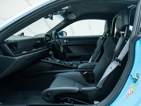 The 992 GT3 RS is a car that needs no introduction. Just one look is enough to understand this car’s significance. It’s outrageous swan neck rear wing and detailed aero elements allow 860kg of downforce at 117mph, doubling its predecessor, the 991.2. Paired with its 4.0 litre naturally aspirated flat six engine its full potential is unleashed, reaching a top speed of 184mph with 518bhp, which is evidence enough for it to claim its well-deserved spot alongside the all-time greats.
