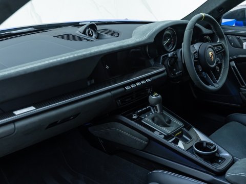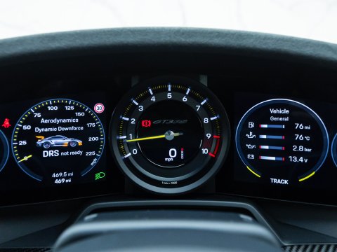 Thanks to lightweight engineering and Porsche’s exceptional attention to detail, its handling is unmatched. Significant and innovative improvements to the front suspension make it the first of its kind in the 911 lineage. Airflow management has also been optimised, featuring a drag-reduction system similar to those found in Formula 1 cars. It activates above 62 mph at 95% throttle and can also be engaged manually via the DRS button on the steering wheel. Inside, the minimalist layout nods to Porsche’s classic sports cars, while introducing its own distinct touches including additional steering-wheel controls for adjusting adaptive dampers and compression.