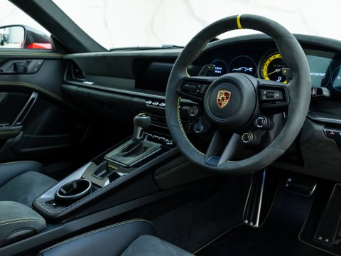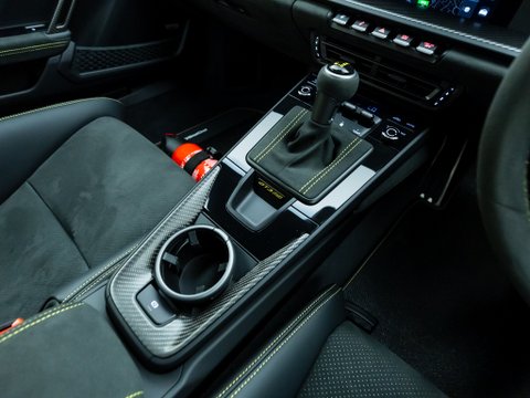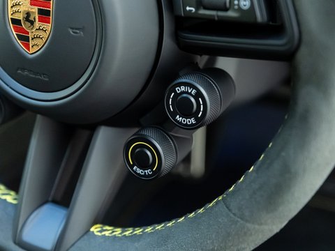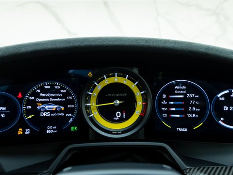 Lightweight construction and Porsche’s incredible attention to detail creates an unmatched handling capability, with notable and unique performance upgrades to the front suspension, making it the first of its kind in this 911 series. The 992’s airflow management has been optimized, alongside a drag-reduction system comparable to those in Formula 1 Race Cars, which activates above 62mph and 95% throttle and can also be activated via the DRS button on the steering wheel. Its simple interior layout pays homage to past iterations of Porsche’s classic sports car. Yet, it does not come without its own unique characteristics such as extra steering controls for adjusting the adaptive dampers and compression levels.