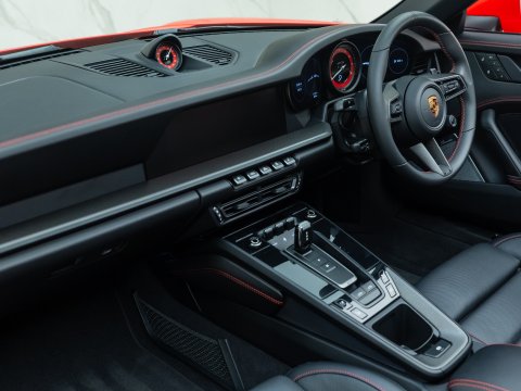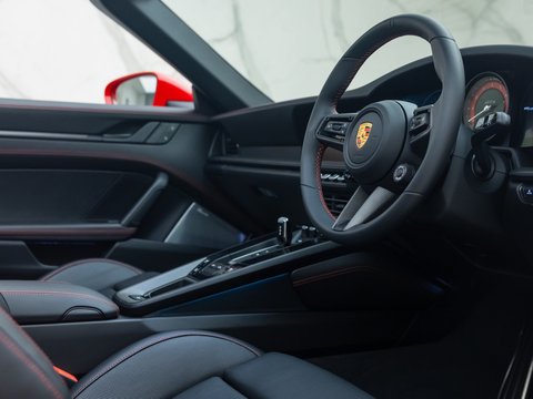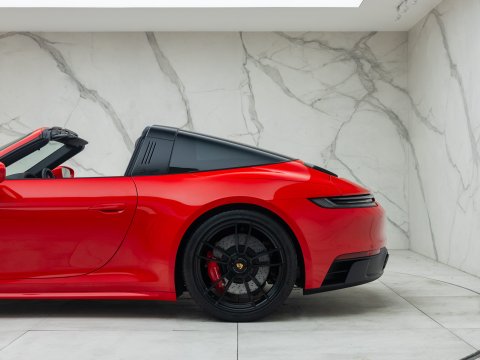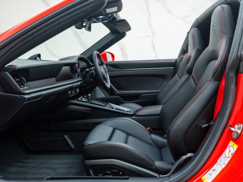 The 992 Targa GTS delivers a 30bhp power boost over the regular Targa 4S, along with upgraded brakes borrowed from the 911 Turbo, and a 10mm lower ride height thanks to the PASM suspension system. As with other GTS variants, it comes generously equipped with performance-focused features as standard, including the GTS Sports Exhaust, Sports Chrono Package, Centre-Lock wheels, and a race-tex interior—all contributing to its more dynamic character.