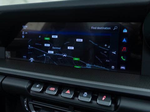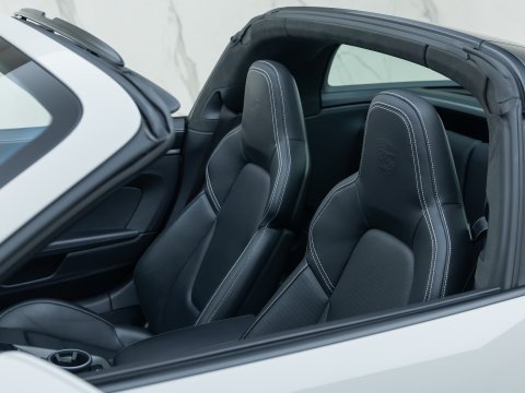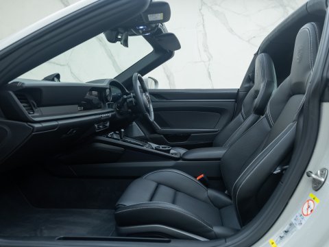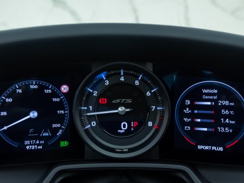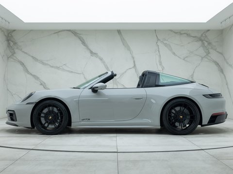 The timeless design of the 911 Targa has been incorporated into the 992 generation featuring the signature characteristic roll-over bar from the classic Targa and the beautifully engineered roof mechanism. The top of the range Targa belongs to the GTS which has long been considered the sweet spot with an extra emphasis on being more driver focused but without the on-road compromises of the more hardcore GT cars. The 992 GTS holds a 30bhp power increase over the regular Targa 4S as well as the uprated brakes from the 911 Turbo and a 10mm lower ride height thanks to the PASM Suspension. Like the other GTS variants you get many goodies as standard including the GTS Sports Exhaust, Sports Chrono Package, Centre-Lock wheels and a race-tex interior all contributing to the more sporty character of the car.