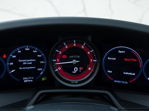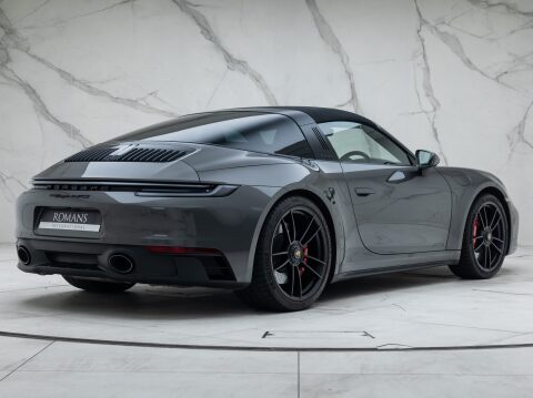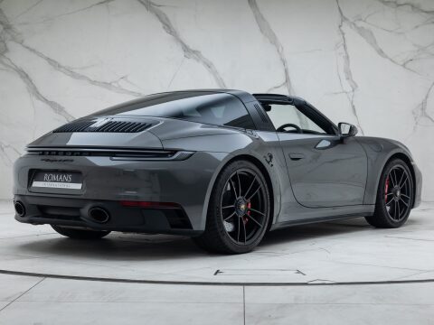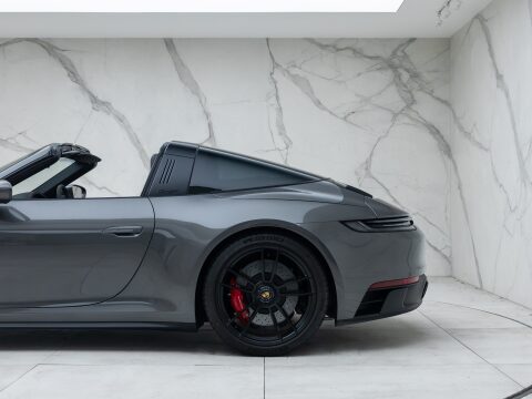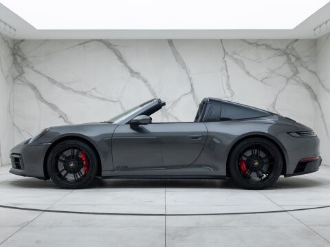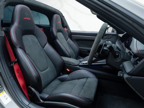 The 992 Targa GTS delivers a 30bhp power boost over the regular Targa 4S, along with upgraded brakes borrowed from the 911 Turbo, and a 10mm lower ride height thanks to the PASM suspension system. As with other GTS variants, it comes generously equipped with performance-focused features as standard, including the GTS Sports Exhaust, Sports Chrono Package, Centre-Lock wheels, and a race-tex interior—all contributing to its more dynamic character.
