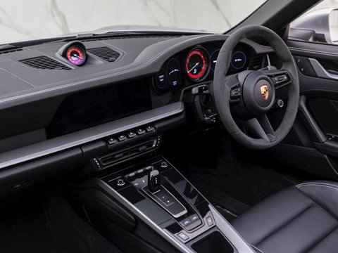 The interior receives a thorough remodeling with an analogue rev counter flanked by 7ā TFT screens and a beautifully integrated centre console. The dainty gear lever, knurled switches and high-quality materials used throughout exude luxury and class, making the cabin a really special place to be. More features included as standard such as cruise control, ParkAssist and Keyless-Go bring the 992 up to speed with its competitorsā trim levels.