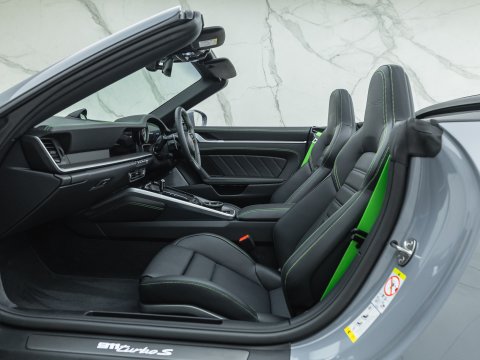 All the interior features that are in the 992-generation line are present in the Turbo S Cabriolet, with interior comfort being paramount. The seating position is low, providing a race inspired feel whilst still granting a good view of your surroundings. A 10.9” touchscreen display allows for quick and simple navigation through the responsive Porsche Communication Management System (PCM), with the new ‘WET mode’ accessible from the drivetrain mode select switch on the lower part of the steering wheel. Ultimately, the 992 generation Turbo S Cabriolet remains true to its roots by offering the ultimate combination of performance and comfort, allowing it to remain as one of the best all-round convertibles on the market today.