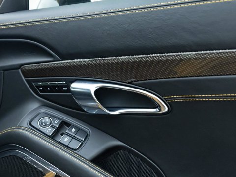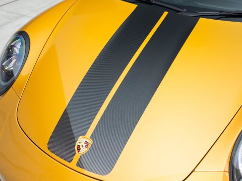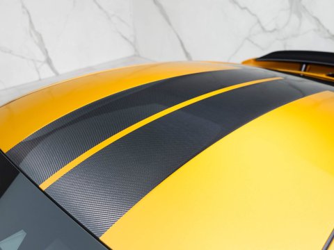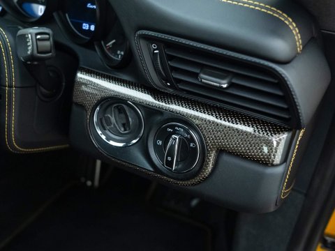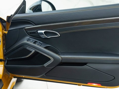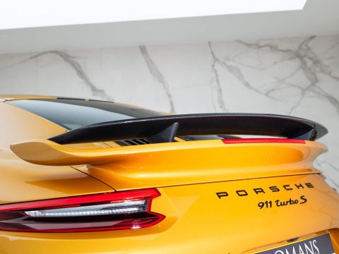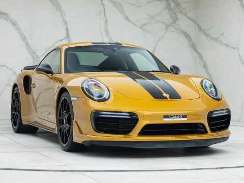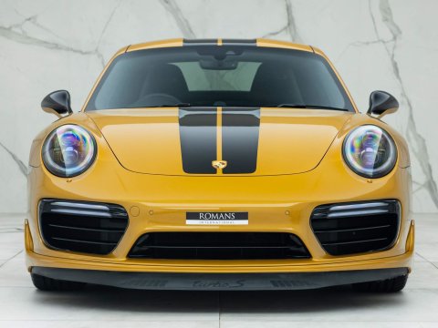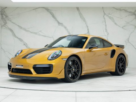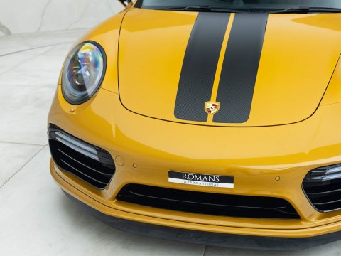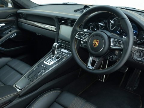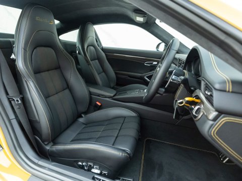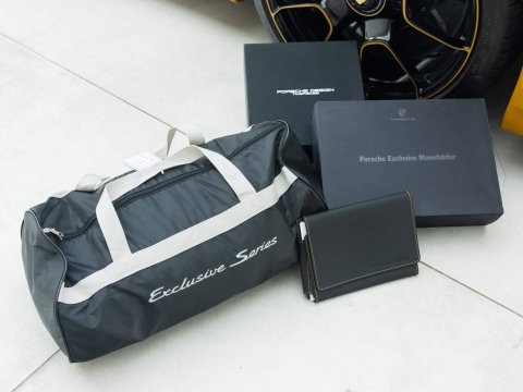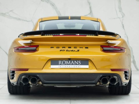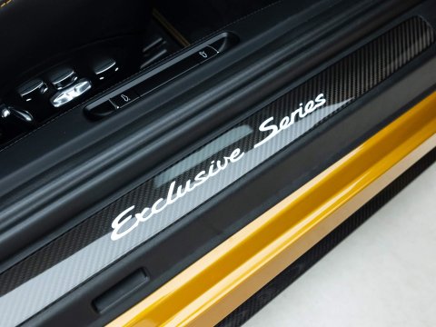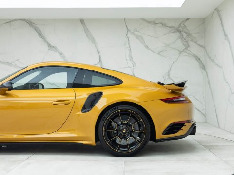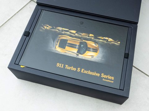 From an aesthetic stand point the Exclusive Series features a number of exterior changes, first and foremost is the sparkling exterior paint work, this example is sporting the exclusive Golden Yellow Metallic paint which is widely agreed as the best colour for this model. The new carbon fibre bonnet and roof feature exposed stripes similar to those seen on the GT2 RS and are complimented with additional carbon fibre sills, rear wing section and air intakes. Yellow calipers should appear as standard on the Porsche Ceramic Composite Brakes (PCCB), however the Exclusive Series continues the colour scheme further with gloss black calipers and contrasting gold Porsche lettering to compliment the 20” black and gold alloy wheels. A reworked diffuser and black rifled exhaust tailpipes give the rear of the car an even more aggressive look than before. Additionally a healthy smattering of ‘Exclusive Series’ badging and embroidery throughout this Turbo S along with a gold carbon fibre weave, contrast stitching and striped seats help to immediately differentiate it from a standard Turbo S. Overall, this is a supremely rare opportunity for serious enthusiasts and collectors to buy a delivery mileage example of the ultimate version of the Turbo S in this definitive exclusive colour.