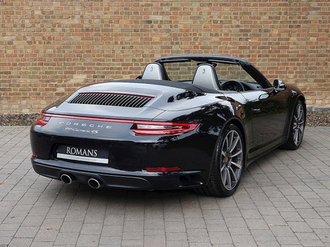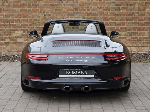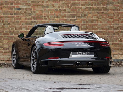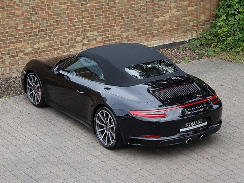 Romans are pleased to offer this stunning 2016/16 Porsche 911 (991) Carrera 4S Cabriolet PDKĀ for sale presented in 'Jet Black' Metallic with Black Leather Interior. This is the new turbocharged four-wheel drive 911 Carrera 4S Cabriolet which takes the scintillating real world performance of the rear wheel drive models and adds extra security, traction and stability in all challenging weather conditions. Furthermore, this vehicle comes with a fantastic specification and is supplied with Porsche Manufacturer's Warranty until April 2019.