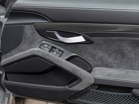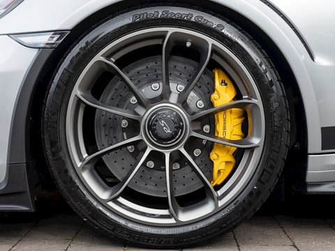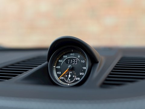 Focusing on weight saving the engineers at Weissach have managed to shave 18kg off the weight of a Clubsport specification GT3 RS. This has been done primarily using a carbon fibre roof and a new titanium roll cage to replace the heavier steel one included with the Clubsport Pack. Saving weight this high up in the car gives the added benefit of lowering the centre of gravity, reducing roll whilst aiding overall braking, acceleration and turn-in performance. Stiffness and further weight reduction have also been achieved through the use of carbon fibre anti-roll bars & drop links, whilst sound deadening has been reduced as well as interior trim and carpeting cut back. The only weight that has been added is that of the Weissach logo embroidery in the headrest and plaque on the cupholder cover, that gently remind you that you are sitting in something truly special. Overall the Weissach Pack creates a GT3 RS that feels sharper, more alert and meaner looking than ever.