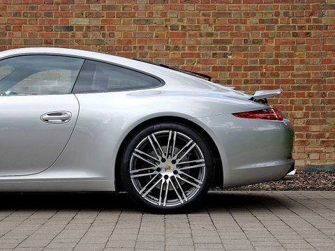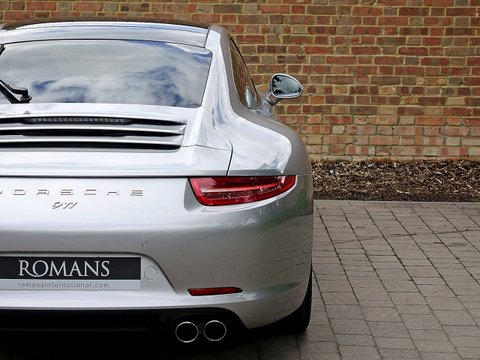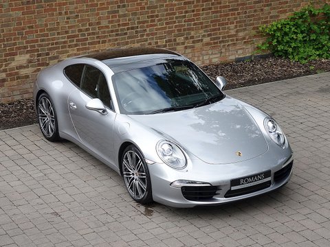 Romans are proud to offer this stunning 2014/14 Porsche 911 (991) Carrera PDKĀ for sale presented in 'GT Silver' Metallic with Black Leather Interior. This vehicle comes with a fantastic specification which is set off by the addition of the Sports Exhaust System, the beautiful 20" 911 Turbo III alloys and the all important Sport Chrono Package Plus and BOSE Sound Package. A fine example which is supplied with the balance of Porsche Manufacturer's Warranty until June 2018.