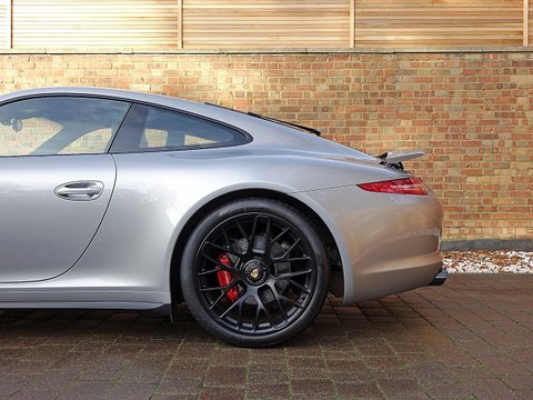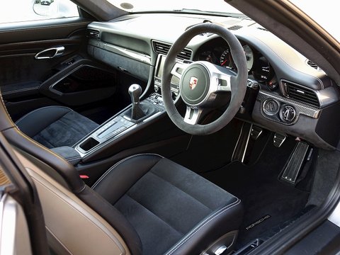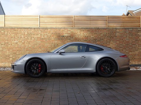 Romans are delighted to offer this exceptional 2014/64 Porsche 911 (991) Carrera GTS for sale presented in 'GT Silver' Metallic with Black Leather Alcantara Interior. This is a very rare example made special by it's manual gearbox and the fact this is one of the last manual 911s to combine with the 3.8L naturally aspirated flat-six engine. Furthermore this car comes with an Extended Porsche Manufacturer's Warranty until November 2019 and is presented in immaculate condition throughout.The 911 Carrera GTS is renowned to be one of the best driving 911's in the range. It sits in between a normal Carrera S and the full blooded 911 GT3. It is for the person who quite fancies a 911 GT3 but is not prepared to put up with the on-road compromises demanded by such a track orientated car. Porsche has taken a regular Carrera S, put a wider body and axle tracks of the Carrera 4 and the engine upgrade of the optional 'powerkit' and likewise included some items of drivetrain and chassis equipment as standard that you'd otherwise have to pay extra for. So the GTS gets Porsche's Sport Chrono Plus Package with Sports Exhaust and Dynamic Engine Mounts, its torque vectoring set-up with the limited-slip diff and its actively damped PASM adjustable suspension thrown in. The suspension and steering have been retuned for greater dynamic poise and feedback, with 10 mm of ride height having been taken out of the former compared with the PASM set-up on the Carrera S. The GTS is also the first 911 to benefit from a retuning of the 991's standard seven-speed manual gearbox for better shift quality.