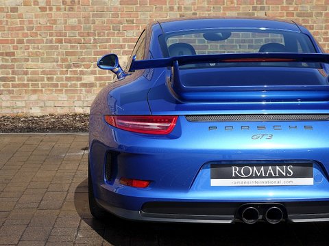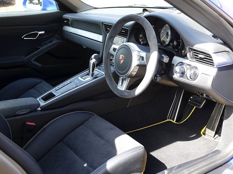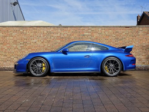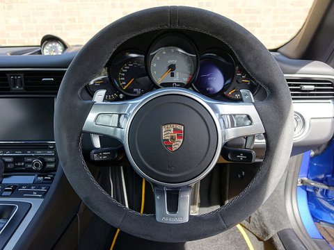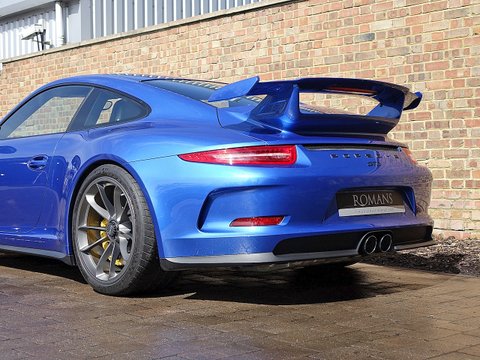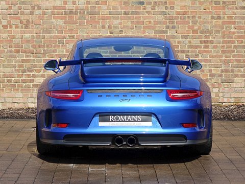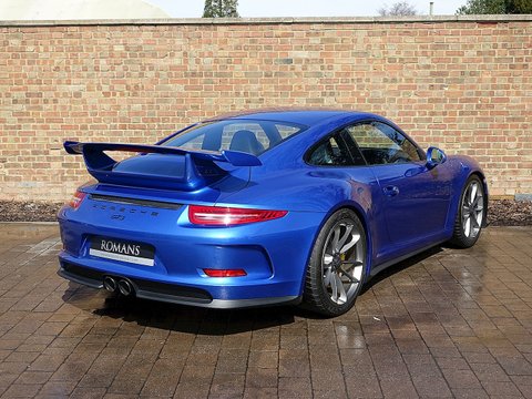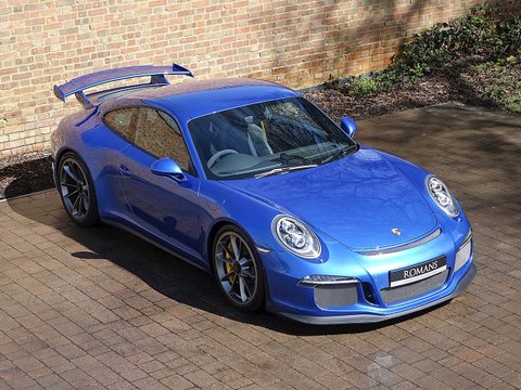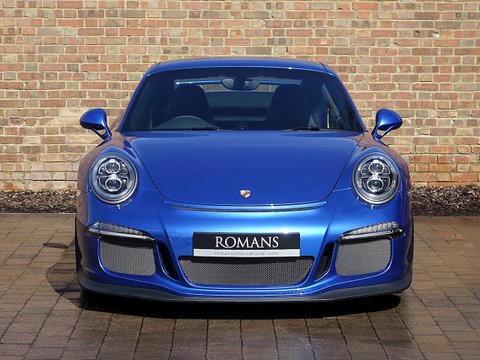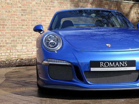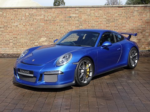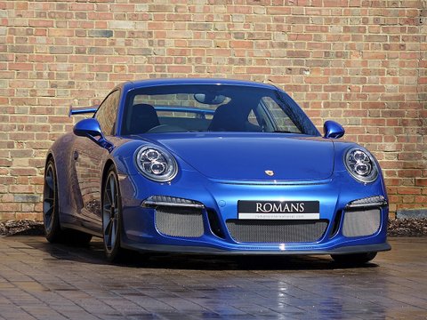 Romans are proud to offer this stunning 2014/64 Porsche 911 (991) GT3 for sale presented in 'Sapphire Blue' Metallic with Black Leather Ā Alcantara. This beautiful example comes with a fantastic specification and the added benefit of a paint protection film to the front end. Furthermore, this car is supplied with the remainder of the Porsche Manufacturer's Warranty until December 2016.