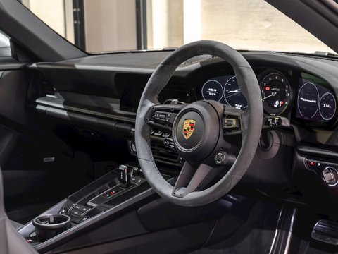 The GTS variant of the 911 range is frequently regarded as the āSweet Spotā Porsche, with the 992 GTS bridging the gap between the standard 992 Carrera and the 992 Turbo. The GTS employs technology from the 992 Turbo S such as the suspension and brakes, meaning that the car can cope with its higher performance figures over the other Carreras. Power is up 30 bhp over the Carrera S with a 0-62mph time delivered in 3.4 seconds with a top speed of 193mph. Despite being twin-turbocharged, chasing the 7400rpm redline is intoxicating, with ample noise pouring into the cabin, adding to the sense of occasion.