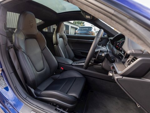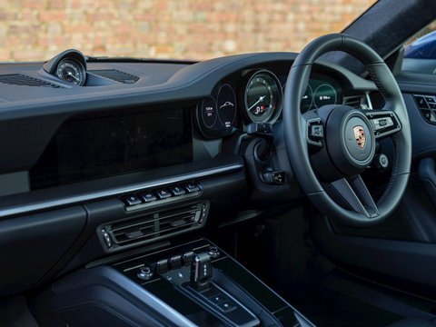 - 'Gentian Blue' Metallic Paint (Ā£876) - Massive Spec Example - Including SportDesign Package + Side Skirts & Sport Chrono Package - Porsche Manufacturer's Warranty until September 2023 - Paint Protection Film (PPF) Applied to Whole Car - Low Mileage 1 Owner Example - UK Supplied The 992 Porsche 911 Carrera represents the next step in the evolution of this iconic legendary sports car. To many in the automotive world the Porsche 911 has for the last 50 years represented a benchmark for what the sports car of its day should be. Now in it’s 8th generation, still defiantly rear engined and unmistakably Germanic, what makes the new 992 different? Firstly, the exterior styling has been significantly modernised, from the streamlined auto-deploying door handles to the brake light included in the rear engine grille, everything has been meticulously thought through. Power is up 30bhp for the S to 444bhp, coincidentally the same amount as the 991.2 GTS, now running through an 8-Speed PDK and launching the car from 0-60mph in just 3.5 seconds and on to a top speed of 191mph. This begs the question, what are figures going to be like on the Turbo S! The interior receives a thorough remodelling with an analogue rev counter flanked by 7ā€ TFT screens and a beautifully integrated centre console. The dainty gear lever, knurled switches and high-quality materials used throughout exude luxury and class, making the cabin a really special place to be. More features included as standard such as cruise control, ParkAssist and Keyless-Go bring the 992 up to speed with its competitors’ trim levels. Tweaks and adjustments to just about every component of the steering, suspension and car calibration have rendered a car which feels more planted, sure footed and capable than ever before. Everything from the brakes to the power delivery feels somehow more cohesive and together, in ways you didn’t realise were lacking. Overall the new 992 picks up exactly where it left off, evolving the 911 further again, including more features as standard and pushing the envelope for how much performance and sheer driving pleasure can be extracted from four wheels.