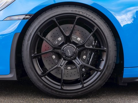 To match the rear-end performance, the front suspension has derived from the 911 RSR. For the first time, the GT3 utilises a double wishbone setup which provides greater stability and more negative camber which in turn means the front tyres have more contact with the ground around corners. Combined with the wider front track, the 992 GT3 has more grip through corners and immediate steering response.