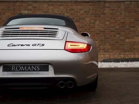 Romans are delighted to offer this exceptional 2011/11 Porsche 911 (997) Carrera GTS Cabriolet PDK for sale presented in 'Platinum Silver' Metallic with Black Leather Alcantara interior. This example comes with a fantastic array of optional extras and full Porsche service history with the added benefit of a recent fresh service by Porsche. Furthermore this car is supplied with an extended Porsche Manufacturer's Warranty until July 2018.Ā The Porsche 911 (997) Carrera GTS Cabriolet, is a drop-top version of the regular 997 Carrera GTS run out special. Based on the 911 Carrera S but with the wider 911 body normally reserved for more potent models such as all-wheel-drive 911s, the GT2 RS and the GT3; it houses the naturally aspirated 3.8 litre flat-six engine but crucially on the GTS it gets the usually optional Power kit as standard, boosting it's output by 22 bhp to 402 bhp. PASM - Porsche Active Suspension Management is standard, as is the Sports Exhaust whilst this particular example comes with the optional PDK Dual Clutch Transmission.With some of the more classic Porsche 911s fetching record prices at auctions in the last year and the latest 911s all adopting turbocharged engines this has led to the 997 series becoming increasingly desirable and the GTS is one of the very finest iterations of the 997.