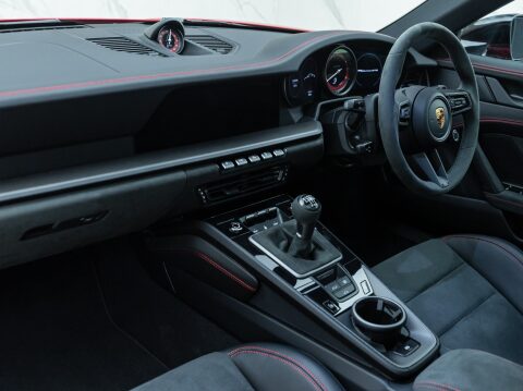 The Porsche 911 (992) Carrera GTS sits at the sweet spot of the 911 range, bridging the gap between the Carrera S and the GT models. Powered by a 3.0-litre twin-turbo flat-six producing 480 PS, the GTS delivers blistering performance with everyday usability, enhanced by Porsche Active Suspension Management, a wider Carrera 4 body shell, and GTS-specific chassis tuning as standard. It’s a driver-focused model engineered for those who want heightened engagement without sacrificing refinement.