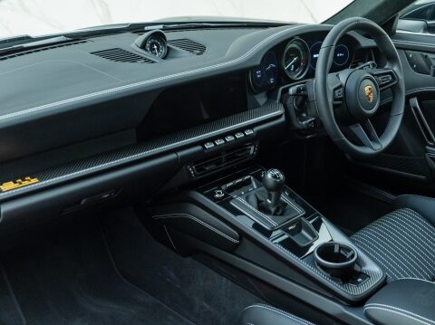 The 4L flat-6 engine comes directly from the 992 GT3RS but by removing the giganticĀ rear wing and adding the manual gearbox, which of course is unavailable for the 3RS, Porsche have created a car that truly resonates with the most discerning Porsche collectors and enthuasiasts. Whilst more road-focused than track, Porsche motorsportĀ have created the lightest 992 yet, helped in part by magnesium wheels and carbon ceramic brakes which come as standard. Porsche have also removed rear axle steering which helps reduce weight and also allows fitment of a lightweight lithium battery. The shift lever is 10mm shorter than it is in the GT3 and with shorter gearing on the drive ratios, you can reach higher revs much quicker allowing you go through the gears in a more engaging and intense driving experience.
