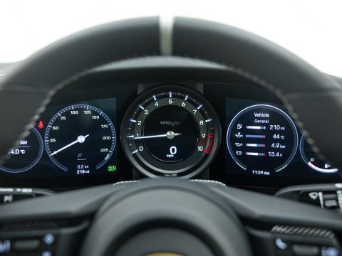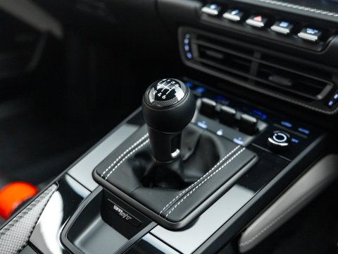 The 4L flat-6 engine comes directly from the 992 GT3RS but by removing the gigantic rear wing and adding the manual gearbox, which of course is unavailable for the 3RS, Porsche have created a car that truly resonates with the most discerning Porsche collectors and enthuasiasts. Whilst more road-focused than track, Porsche motorsport have created the lightest 992 yet, helped in part by magnesium wheels and carbon ceramic brakes which come as standard. Porsche have also removed rear axle steering which helps reduce weight and also allows fitment of a lightweight lithium battery. The shift lever is 10mm shorter than it is in the GT3 and with shorter gearing on the drive ratios, you can reach higher revs much quicker allowing you go through the gears in a more engaging and intense driving experience.