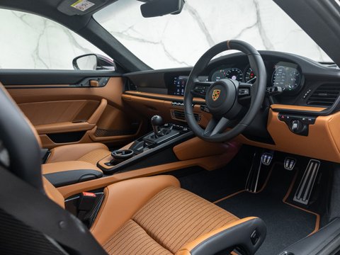 The 4L flat-6 engine comes directly from the 992 GT3RS but by removing the gigantic rear wing and adding the manual gearbox, which of course is unavailable for the 3RS, Porsche have created a car that truly resonates with the most discerning Porsche collectors and enthuasiasts. Whilst more road-focused than track, Porsche motorsport have created the lightest 992 yet, helped in part by magnesium wheels and carbon ceramic brakes which come as standard. Porsche have also removed rear axle steering which helps reduce weight and also allows fitment of a lightweight lithium battery. The shift lever is 10mm shorter than it is in the GT3 and with shorter gearing on the drive ratios, you can reach higher revs much quicker allowing you go through the gears in a more engaging and intense driving experience.