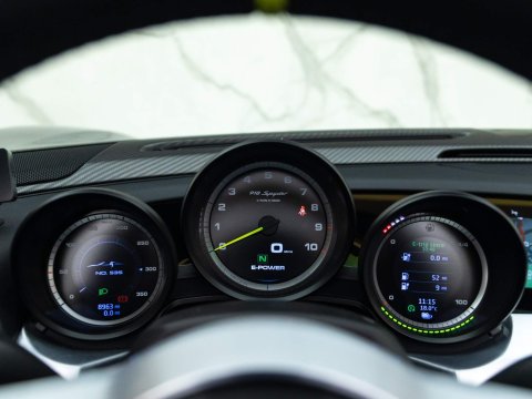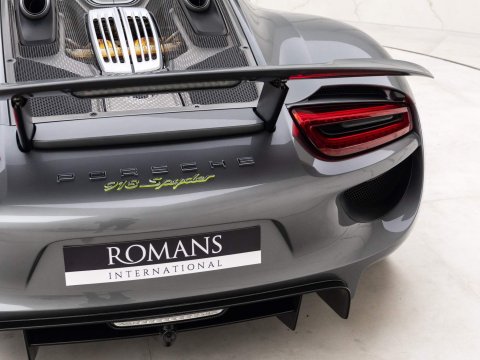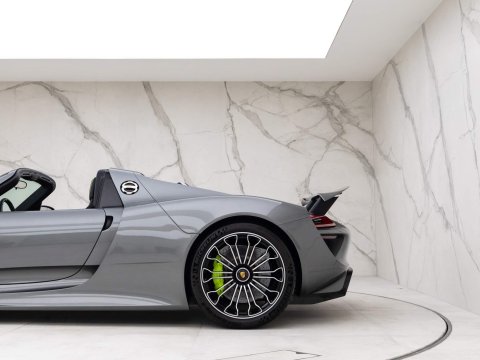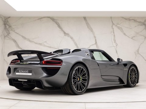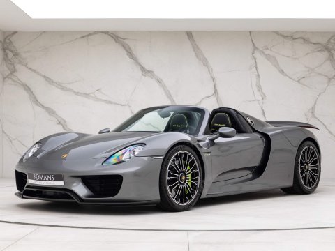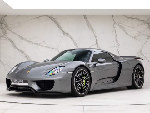 Meteor Grey Metallic Paint with Onyx Black Leather Interior - 1 Owner Example - 1 of 918 Examples Worldwide - Including Front Axle Lift System - Just Serviced By Porsche Reading - Paint Protection Film (PPF) Applied to Front Bumper + Lower SillsOptional Extras:20-Inch/21-Inch 918 Spyder Alloy WheelsMeteor Grey Metallic PaintFront Axle Lift SystemElectric Seat Height Adjustment for PassengerGlare Reducing Interior PackageHomeLink Garage Door OpenerLightweight Bucket Seats with Tighter FitVehicle Key Painted in Meteor Grey with Key Pouch in LeatherPaint Protection Film (PPF) Applied to Front Bumper + Lower SillsStandard Features:2-Piece Removable Hardtop7-Speed Porsche Doppelkupplung (PDK)Acid Green Brake CalipersAuto Start Stop Function With CoastingBurmester High-End Surround Sound System Featuring 11 Speakers & 500 Watt OutputCruise ControlDaytime Running Lights Featuring 4-Point LEDs Per HeadlightDrivetrain Modes (Including: E-Power (E) + Hybrid (H) + Sport Hybrid (S) + Race Hybrid (R) & Hot Lap (Red button))Electrically Adjustable & Heated Side MirrorsHD Radio ReceiverIndividual Brake Pad Wear SensorsMotorsport-Derived Suspension Concept Including Rear Axle SteeringPorsche Active Aerodynamics (PAA)Porsche Active Suspension Management (PASM) With Normal & Sport ModesPorsche Ceramic Composite Brakes (PCCB) with Hybrid Brake SystemPorsche Communication Management (PCM) Including 3D Navigation DisplayPorsche Torque Vectoring Plus (PTV Plus) Including Electronically Controlled Rear Differential LockSports Exhaust System with Top Tailpipe ExitsTyre Pressure Monitoring System (TPMS)