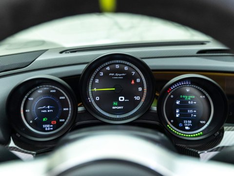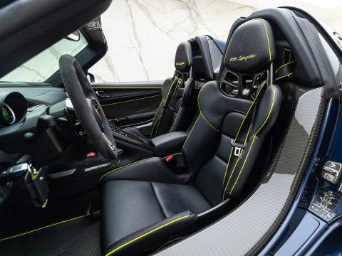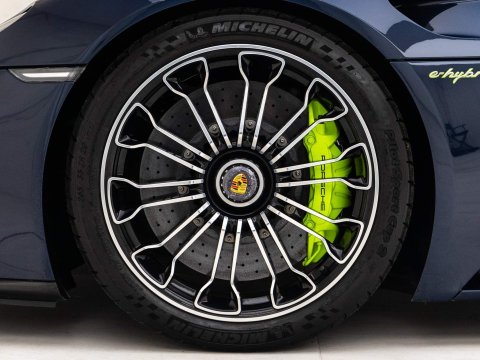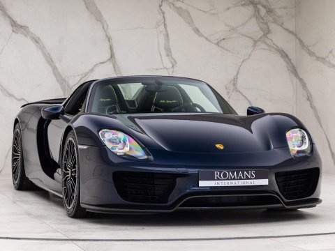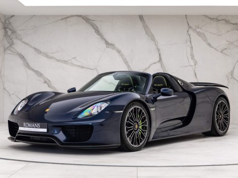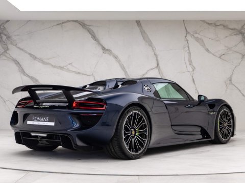 1 of 918 Examples Worldwide - Including Front Axle Lift System & Carbon Fibre Interior Package - EU Supplied, UK Registered - Paint Protection Film (PPF) Applied to Whole CarOptional Extras:20/21-inch 918 Spyder Alloy WheelsDark Blue Metallic PaintFront Axle Lift SystemFull Paint Protection Film (PPF)Carbon Fibre Interior PackageGlare Reducing Interior PackageLightweight Bucket Seats with Tighter FitAcid Green Seatbelt Stripe AccentsVTS Security PackageElectric Passenger Seat Height AdjustmentCarbon Floor Mats with Acid Green PipingColour-Matched Key & Leather Key PouchFire ExtinguisherStandard Features:2-Piece Removable Hardtop7-Speed Porsche Doppelkupplung (PDK)Acid Green Brake CalipersAuto Start Stop Function With CoastingBurmester High-End Surround Sound System Featuring 11 Speakers & 500 Watt OutputCruise ControlDaytime Running Lights Featuring 4-Point LEDs Per HeadlightDrivetrain Modes (Including: E-Power (E) + Hybrid (H) + Sport Hybrid (S) + Race Hybrid (R) & Hot Lap (Red button))Electrically Adjustable & Heated Side MirrorsHD Radio ReceiverIndividual Brake Pad Wear SensorsMotorsport-Derived Suspension Concept Including Rear Axle SteeringPorsche Active Aerodynamics (PAA)Porsche Active Suspension Management (PASM) With Normal & Sport ModesPorsche Ceramic Composite Brakes (PCCB) with Hybrid Brake SystemPorsche Communication Management (PCM) Including 3D Navigation DisplayPorsche Torque Vectoring Plus (PTV Plus) Including Electronically Controlled Rear Differential LockSports Exhaust System with Top Tailpipe ExitsTyre Pressure Monitoring System (TPMS)