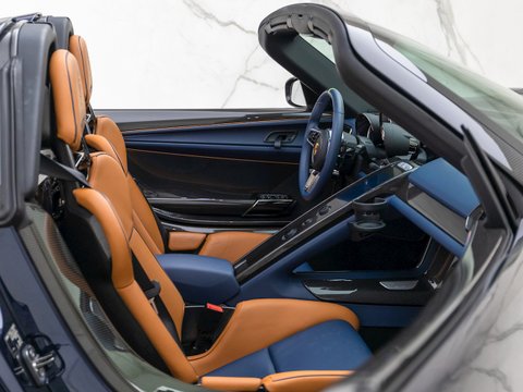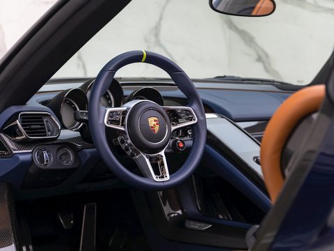 On their most hardcore cars such as the GT2 RS, GT3 RS and this the 918 Spyder, Porsche offer performance-oriented packages named after Weissach, where Porsche's research and development centre is based. The £60,000 Weissach Pack option box on the 918 Spyder specification sheet was ticked on approximately 25% of the cars which left the factory, making these cars even rarer and more desirable. This Nurburgring developed pack is all about shaving weight using features such as lightweight Magnesium wheels, titanium chassis bolts and plenty of carbon fibre. Aerodynamics are also improved with a front splitter and rear aero fins in exposed carbon fibre to compliment the roof and windscreen surround. Other highlight features include the grab handles which have replaced the heavier door handles and racing harnesses for both seats to keep you firmly planted.