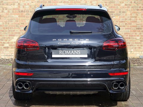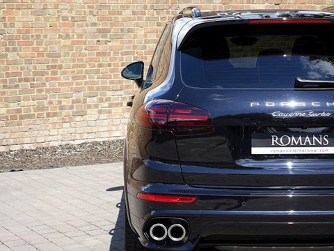 Ā Romans are proud to present this stunning 2015/65 Porsche Cayenne Turbo S for sale presented in 'Jet Black' Metallic with Black Smooth Leather Interior. This 1 owner example comes with a massive specification including the Sport Design Package/, Burmester High-End Surround Sound System and so much more. Furthermore/, this vehicle is supplied with Porsche Manufacturer's Warranty until December 2018.The Cayenne Turbo S is by far one of the best 4x4s on the market today. With its 4.8L V8 Twin-Turbo and brilliant four-wheel drive system/, the Turbo SĀ has incredible performance abilities. The Cayenne Turbo S can reach 0-62mph in just 4.1 seconds and a top speed of 176mph. Alongside the staggering performance/, this carĀ also offers a luxurious interiorĀ which is a lovely place to be for those long journeys.