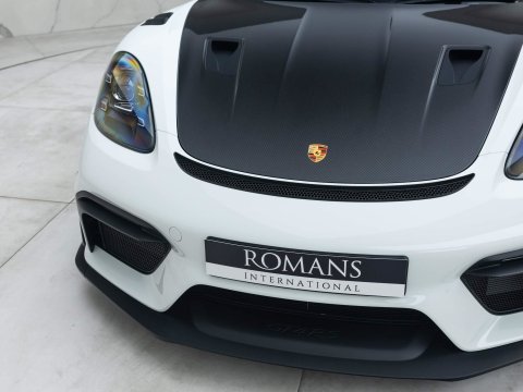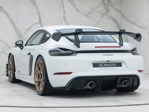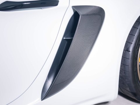 Aesthetically, there are many changes that the GT4 RS brings over the "standard" GT4. A large swan-neck spoiler now graces the rear to create massive downforce and improve handling. The front end, particularly when sporting the Weissach Package, has been subtly-yet-tastefully updated, with larger front grilles and the instantly recognisable carbon fibre bonnet. All of this, combined with significant weight savings and enhanced aerodynamics, combine to form a Cayman that is unlike any other.