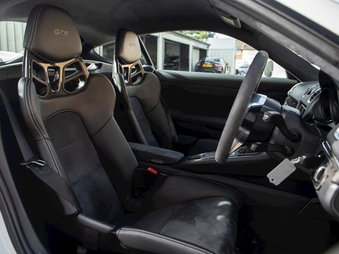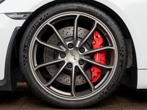 The Cayman GT4 is Porsche's highly desirable track focused version of the already extremely capable Cayman. Porsche had to tread carefully with this cars performance placement, sitting it somewhere in between the Cayman GTS and the 911 GT3, and what a car they have produced. Outside the GT4 receives much more, down force generating, aggressive styling with additions such as the protruding full width front splitter, bulging side air intakes and the rather conspicuous adjustable rear wing. The Brake setup is pinched straight from the GT3 as is much of the adjustable suspension/roll-bars, dropping the car 30mm lower than the standard Cayman. All these manually adjustable settings really allow the track day enthusiast to dial their car into different circuits and get hands-on with the mechanical workings of this track day weapon.