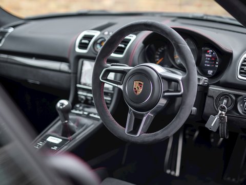The Cayman GT4 is Porsche's highly desirable track focused version of the already extremely capable Cayman. Porsche had to tread carefully with this cars performance placement, sitting it somewhere in between the Cayman GTS and the 911 GT3, and what a car they have produced. Outside the GT4 receives much more, down force generating, aggressive styling with additions such as the protruding full width front splitter, bulging side air intakes and the rather conspicuous adjustable rear wing. The Brake setup is pinched straight from the GT3 as is much of the adjustable suspension/roll-bars, dropping the car 30mm lower than the standard Cayman. All these manually adjustable settings really allow the track day enthusiast to dial their car into different circuits and get hands-on with the mechanical workings of this track day weapon.