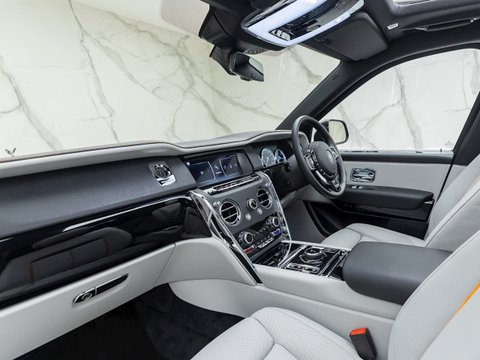 This example features the Immersive Seating option with Fixed Centre Console, one of the most luxurious options available from Rolls-Royce. This feature gives the back seats massage functionality, with a centre console that contains a fridge for your champagne, two champagne flutes, an elegant whiskey decanter, complete with two whiskey glasses. This is the ultimate way to travel to your red carpet events, or perhaps the perfect way to wind down after a long evening socialising in Mayfair. When it comes to attention to detail, Rolls-Royce are unmatched in offering an extremely well-thought out package in the Cullinan.