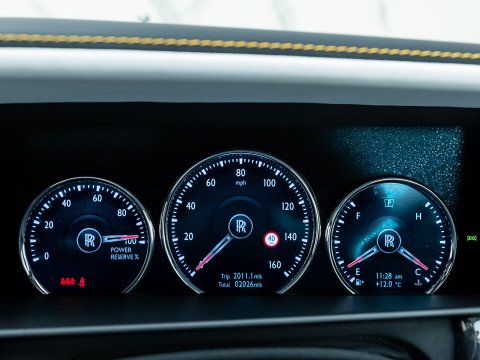 The Black Badge receives a power increase over the standard model from 563 bhp to 592 bhp and coupled with the new exhaust system for the Black Badge, the 6.75L V12 now has a more playful character when cycling through the gears. The Spirit of Ecstasy is presented in high gloss black chrome with the front grille surround, side frame finishers and other exterior trim have been darkened. The part polished forged alloy wheels are also unique to the Black Badge spec. Technical Carbon veneer finishes off the interior, completing the classy and luxurious environment.