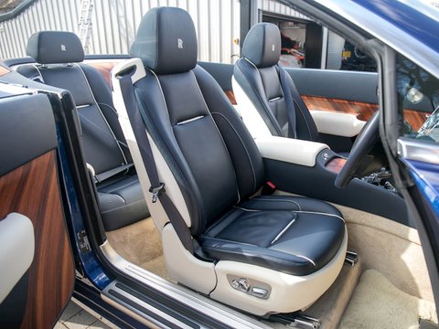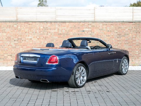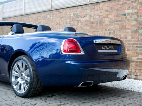 Romans are delighted to offer this outstanding 2017/17 Rolls Royce Dawn for sale presented in 'Royal Blue' with Navy Blue & Cornish White Natural Grain Leather Interior. This 1 owner example comes with a fantastic specification including the all-important Driver Assistance System 3, the Rolls Royce Bespoke Audio, Veneer Package 2 and the fantastic looking Teak Decking. The wood panelling alone costs £16,470. A phenomenally specced car that must be one of the most beautiful we have ever had in stock. A fine example that is supplied with Rolls Royce Manufacturer's Warranty until June 2020.