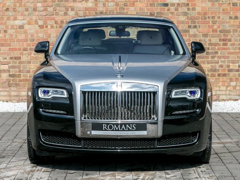 Romans are delighted to offer this wonderful 2014/64 Rolls Royce Ghost Series II for sale presented in 'Diamond Black' Metallic with Seashell & Black Hide. This fantastic example comes with the Dynamic Package, Driver Assistance 1 and the all important Rear Theatre Configuration. A truly exceptional example that is supplied with Rolls Royce Manufacturer's Warranty until September 2018.