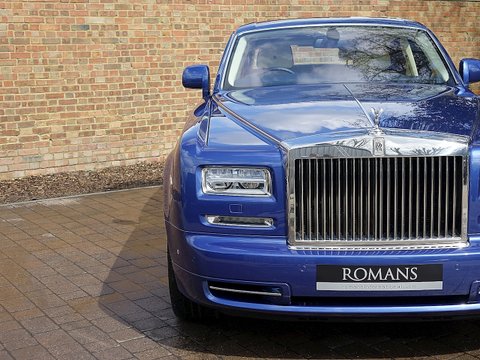 Romans are proud to offer this stunning 2013/13 Rolls Royce Phantom Series IIĀ for sale presented in 'Metropolitan Blue' with Creme Light and Navy Blue Leather. This beautiful example comes with the Service Pack until March 2017 andĀ Rolls Royce manufacturer's warranty until March 2017.The Series II Phantom featured a whole host of upgrades over the Series I including a new 8-speed gearbox, styling enhancements, advanced techonology and improved economy.
