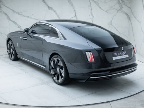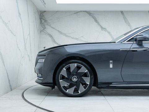 The Rolls-Royce Spectre represents a new chapter for the marque - its first fully electric production motor car, yet unmistakably a Rolls-Royce in every respect. Effortless, near-silent propulsion enhances the sense of serenity the brand is known for, while the elegant fastback silhouette and illuminated Pantheon grille create one of the most dramatic presences in modern luxury motoring. Rear-hinged coach doors open to reveal a meticulously crafted interior, where exquisite materials, intricate detailing and advanced technology combine to deliver an experience that is both contemporary and timeless.