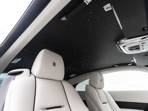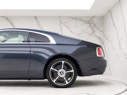 The Wraith has fantastic road presence thanks to it’s imposing yet elegant lines and commands respect with it’s powerful, sweeping fastback design. The monstrous power unit in the Wraith produces mind bending performance for a car of such magnitude, however great lengths have been taken to ensure the power is delivered in a seemingly effortless manner and to retain that infamous Rolls-Royce ‘magic carpet ride’. Open the coach doors and step inside to discover everything you would expect from a Rolls-Royce interior and more. You feel instantly cocooned and cosseted by the finest grain natural leather, soft wool carpets and cashmere headlining. Overall the Wraith blends contemporary styling, modern performance and handcrafted British coachwork to create arguably one of the most luxurious modes of transport in the world.