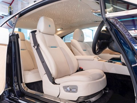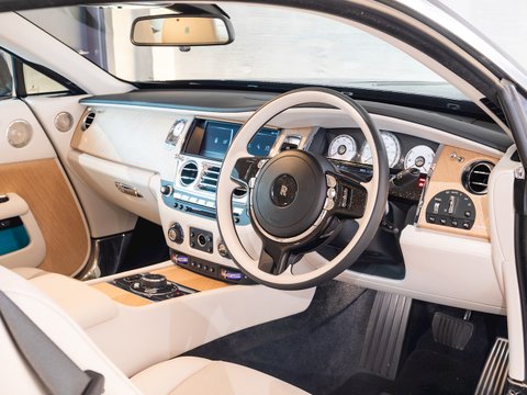 The Wraith has fantastic road presence thanks to it’s imposing yet elegant lines and commands respect with it’s powerful, sweeping fastback design. The monstrous power unit in the Wraith produces mind bending performance for a car of such magnitude, however great lengths have been taken to ensure the power is delivered in a seemingly effortless manner and to retain that infamous Rolls-Royce ‘magic carpet ride’. Open the coach doors and step inside to discover everything you would expect from a Rolls-Royce interior and more. You feel instantly cocooned and cosseted by the finest grain natural leather, soft wool carpets and cashmere headlining. Overall the Wraith blends contemporary styling, modern performance and handcrafted British coachwork to create arguably one of the most luxurious modes of transport in the world.