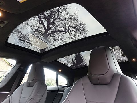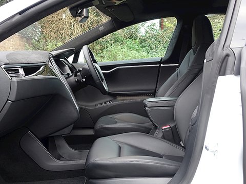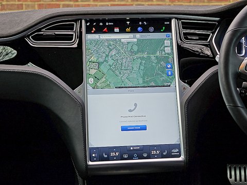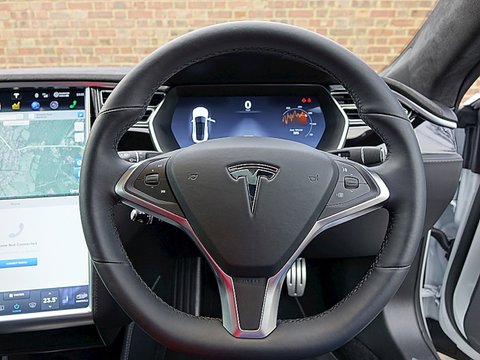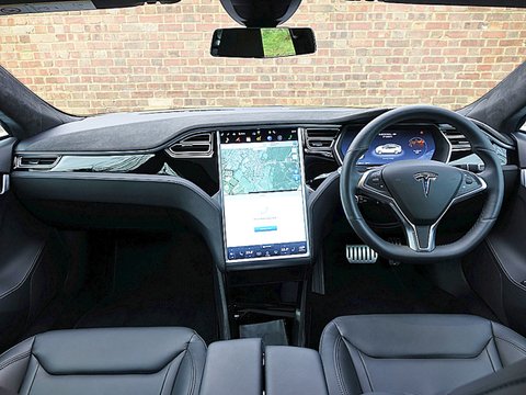 Tesla have also introduced a new safety feature called Autopilot aimed to revolutionise the daily commute and safety behind the wheel. Using cameras, radar and ultrasonic sensors, Autopilot allows the car to steer within a lane, change lanes and manage speed by using active traffic-aware cruise control. Digital control of motors, brakes and steering helps avoid front and side collisions along with preventing the car from wandering off the road. Finally, the car can also scan for a parking space, alert the driver if one is available and parallel park on command. The Autopilot features are progressively enabled over time with software updates. Step inside the P85D and you are immediately greeted by the sumptuous leather interior and the 17" touchscreen, which is angled towards the driver and controls most of the vehicle's functions. The touchscreen can enable you to open the all glass panoramic roof, view the high definition rear view camera, access Google Maps with real traffic information, setup synchronisation for daily schedules, understand your real-time energy consumption and range estimation. Moreover, the touchscreen includes both day and night modes for better visibility without distraction.
