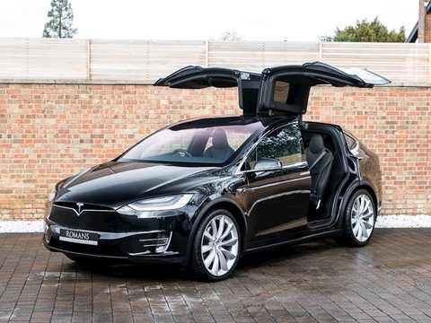 Romans are delighted to offer this outstanding 2017/17 Tesla Model X 100D All Wheel Drive for sale presented in 'Obsidian Black' Metallic with Black Leather Interior. This example represents a massive saving on list price as this car listed at over £126,000 when new. Furthermore, this is the Model X 100D which provides great value as it combines the longest range available with instant acceleration of Tesla's electric all-wheel drive.