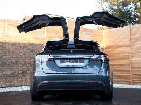 Romans are delighted to offer this stunning 2016/66 Tesla Model X P100D for sale presented in 'Midnight Silver' Metallic with Black Leather Interior. This beautiful car represents a massive saving on list price and comes with the all important Life Time Charging and Ludicrous Mode. Furthermore, this example comes with the brilliant Autopilot 2 function with various aids that assist you when driving along.